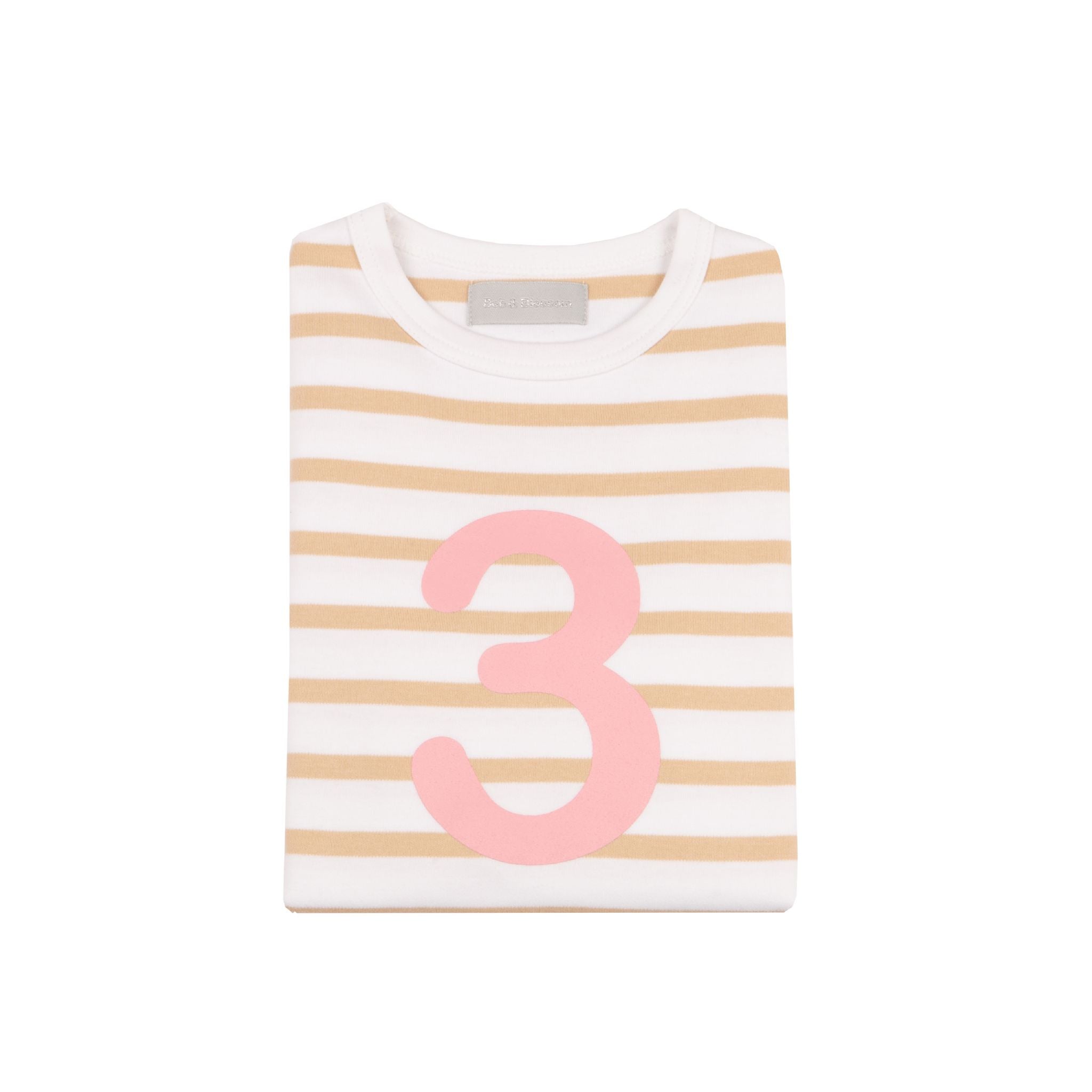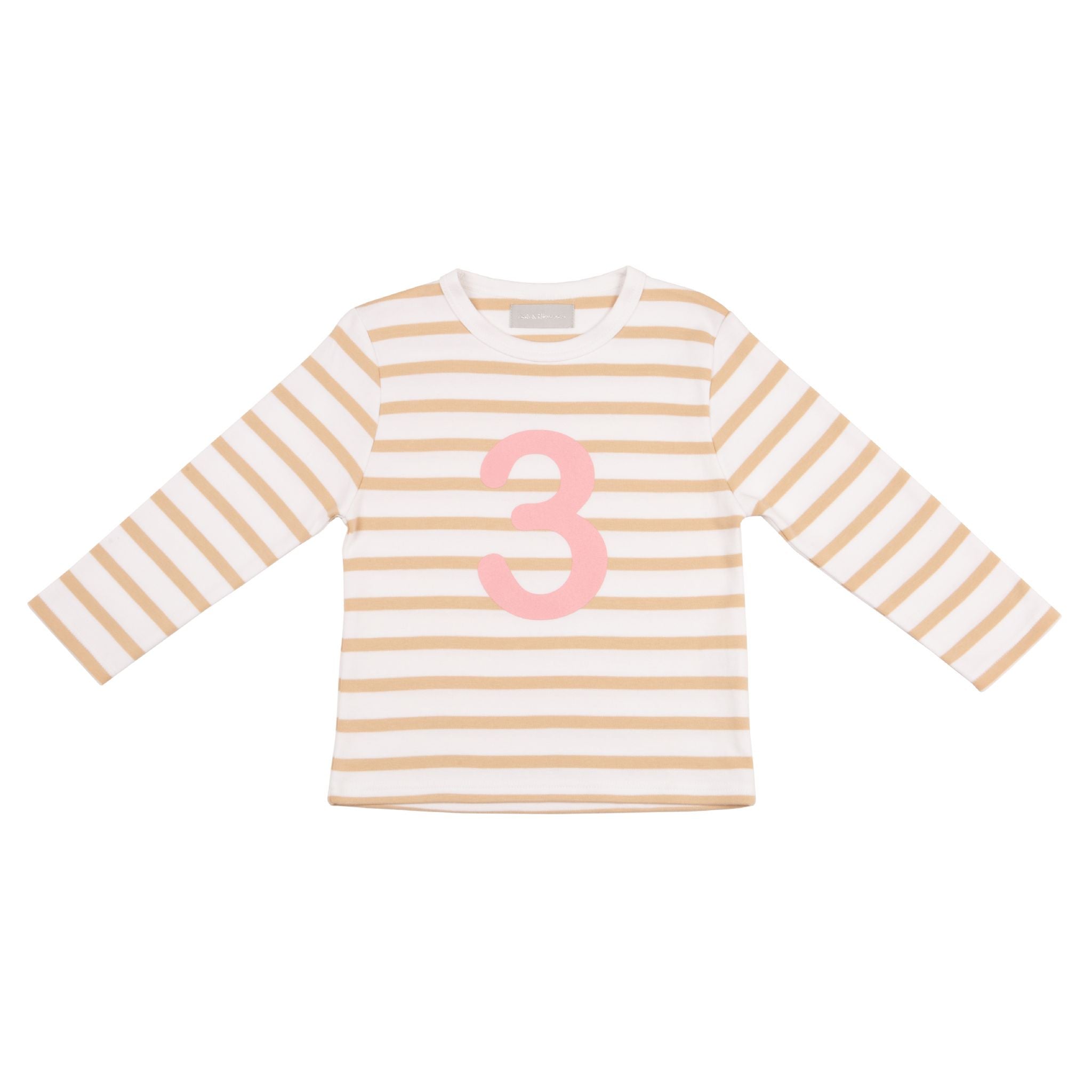 This fun breton striped, long sleeved T-shirt by Bob and Blossom features a pink number 3, making it a perfect gift for a little one's third birthday. Designed to fit from age 3 - 4 and generously cut to allow for a full year's growth (in theory!)