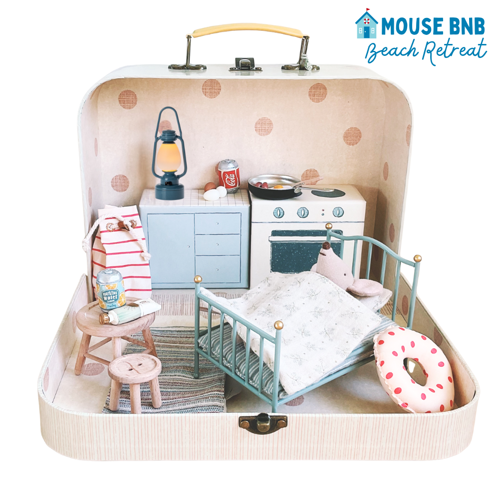 Our Maileg Mouse BNBs are beautifully curated play sets in a suitcase. Just like a real one-room holiday home, every Mouse BNB comes with the essential items for a great vacation. From 'beach cabins' and 'city centre apartments' to 'mountain hideaways' and 'cosy cottages' we have something for everyone!