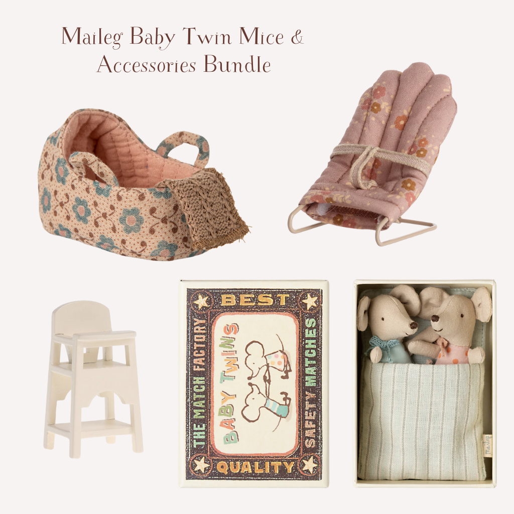 Welcome the sweetest little duo into your home with this charming Maileg Baby Twins Bundle. Tucked up in their matchbox bed, these adorable baby mice are ready for a day filled with playtime and plenty of make-believe mischief.