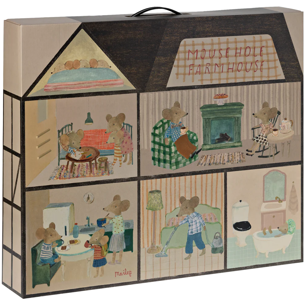 In true Maileg style, even the box is lovely! The box features charming illustrations of the Maileg mouse family relaxing at home and also gives you some ideas about how to furnish your dolls house.