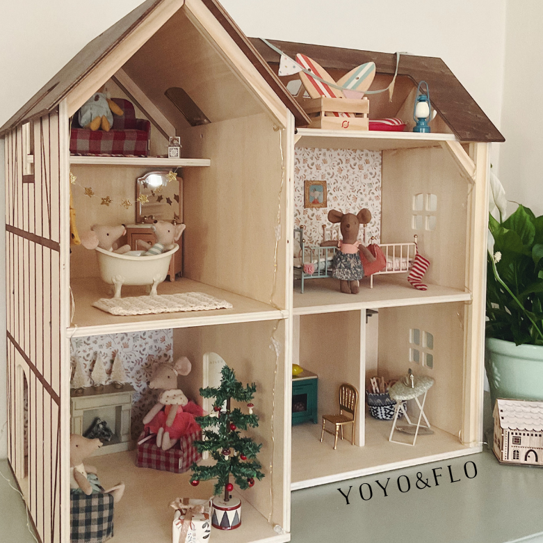 The Maileg Farmhouse was added to Maileg's dolls house collection in 2023. Smaller than the House of Miniature and larger than the Maileg castles, the Maileg Mouse Hole Farmhouse is a medium sized dolls house with lots of space to create a stunning home for your Maileg mice.