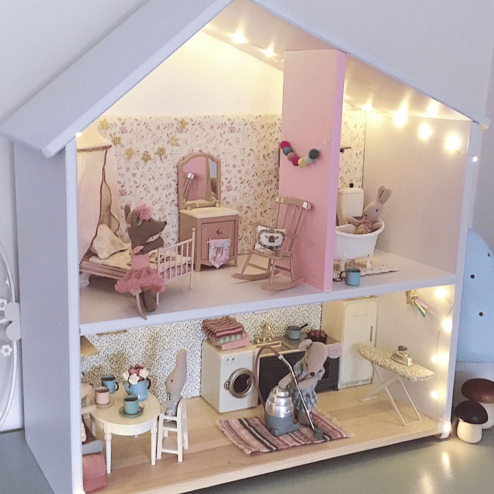 The Ikea Flisat dolls house makes a great mouse house for your Maileg friends. We have lots of information in our blog about transforming this basic wooden shelf into a forever home for your Maileg mice.