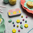 The charming gift tin contains elastic and beads to create a lovely daisy chain bracelet. The elastic comes with hard ends to aid the beading process for young children. Then a little patience and precision are all that's needed assemble the bracelet.