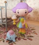 With her vibrant purple hair and a candy-coloured dress, Tutti is a true little foodie! Always ready to indulge her sweet tooth, she carries a pair of delicious ice creams in her hands. By her side is her inseparable companion, Frutti the adorable seal.