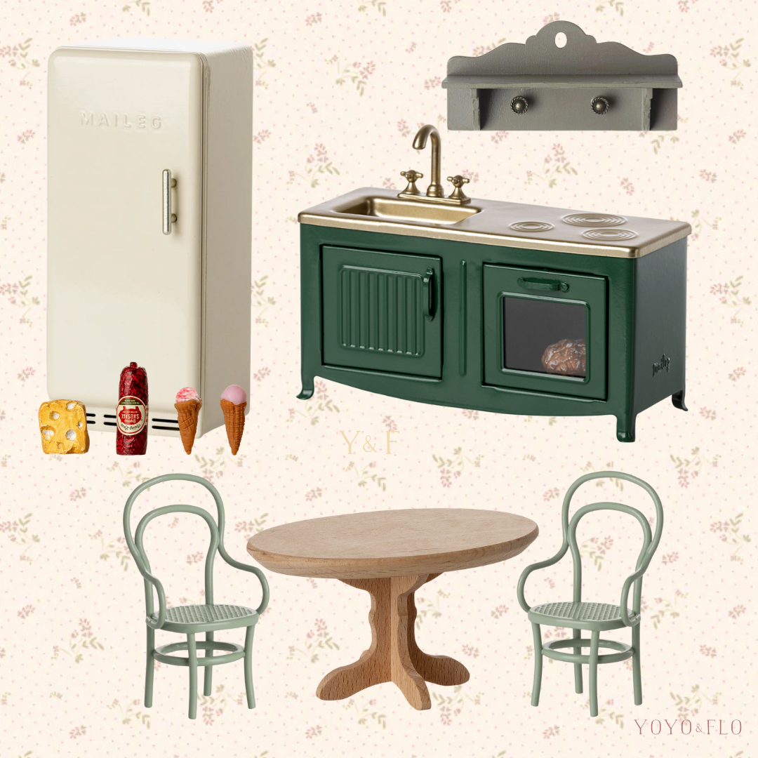 This bundle makes setting up your mouse house so easy - there's no need to worry about sizing, everything fits perfectly together. Every piece has been carefully curated in complementary tones, to create a cosy kitchen and dining area for your Maileg mice.