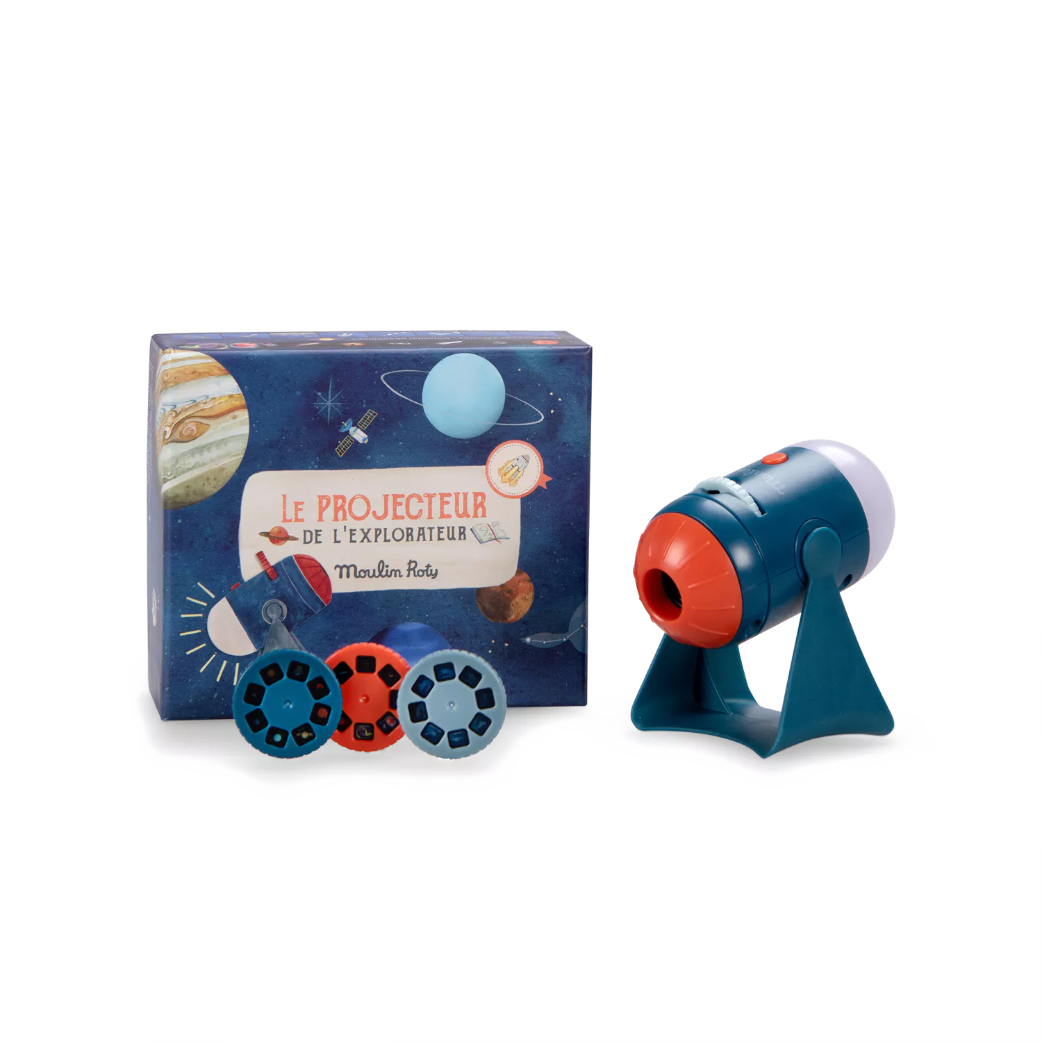A wonderful guide to the night sky, our Explorer’s light projector from Moulin Roty projects fabulous illustrations of the night sky on the floor and ceiling. It features 4 disks of 8 scenes which will help your child discover space, stars and planets.